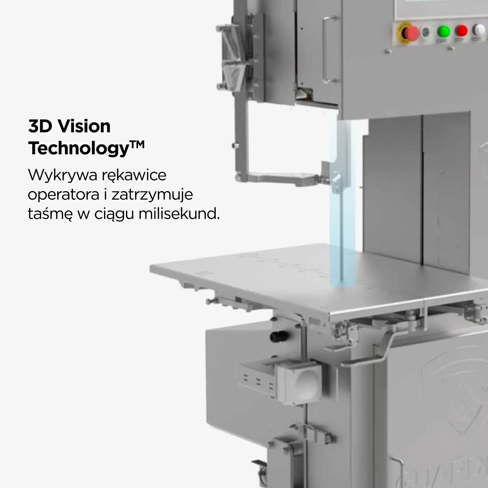 Nasze piły produkcyjne są wyposażone w system 3D Vision oraz zapasowy system kontaktowy, a także automatyczne napinanie i hamowanie piły.