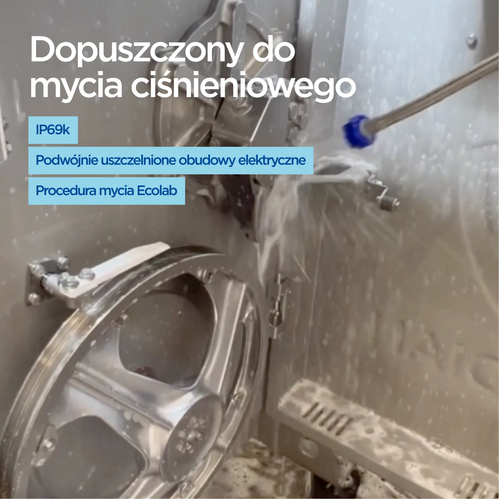 - Odporność na mycie ciśnieniowe (IP 69k)